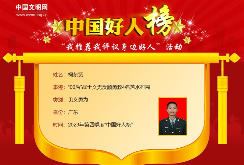 柯东贤入选“中国好人榜”
