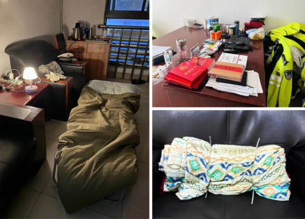 每天早上7点不到,许允若就来中队了,简单吃两口早饭,把中药炖上,7:30之前就出门去站高峰了。同事董裕民到中队,正好会碰到出门的许允若,“嗨,出去了!”这是他们每天都会打的招呼。“他来得比谁都早,中午匆匆回来把早上炖的药喝了,在卫生间洗个脸擦把汗就又走了。”董裕民红着眼眶说,“今天早上,进门没碰到他,路过他办公室,看到他擦汗的那条毛巾孤零零地挂在那里,心一下子难受得受不了。”
