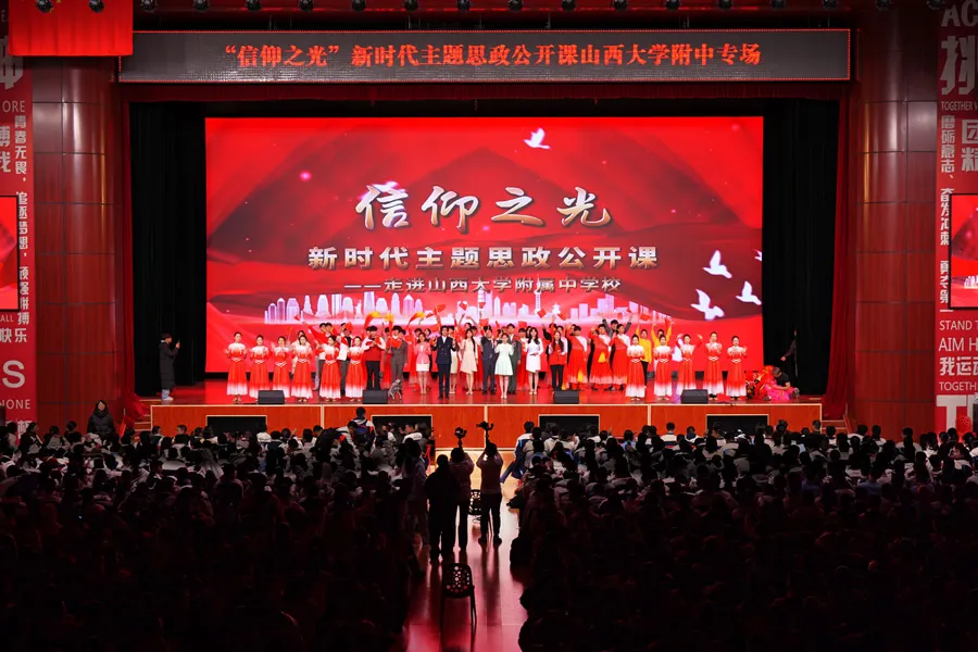 近日,山西师范大学“信仰之光”新时代主题思政公开课走进山西大学附属中学,以沉浸式演绎、故事化表达、互动式体验的创新形式,呈现了一场兼具思想深度、情感温度与艺术感染力的思政盛宴。