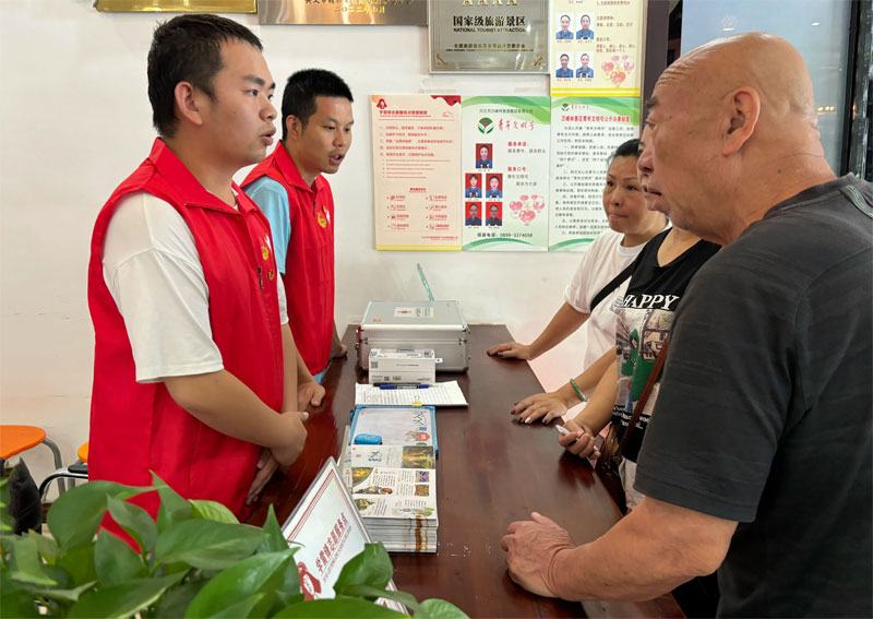 在贵州醇景区,身着红马甲的志愿者为游客提供咨询、引导服务,确保游览秩序井然。兴义市各4A级以上景区均设立了“学雷锋志愿服务站”,节假日期间,志愿者在停车场、交通枢纽等关键点位提供秩序维护、医疗救助等服务,赢得游客广泛好评。