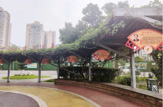 射洪市新时代文明实践中心外的追光长廊(11月2日摄)。新华网 李然 摄