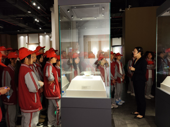 10月20日,四川宋瓷博物馆举办《天凉好个秋 共月品瓷韵》秋日主题青教活动,志愿者为青少年讲解宋瓷发展史。(四川宋瓷博物馆供图)pagebreak