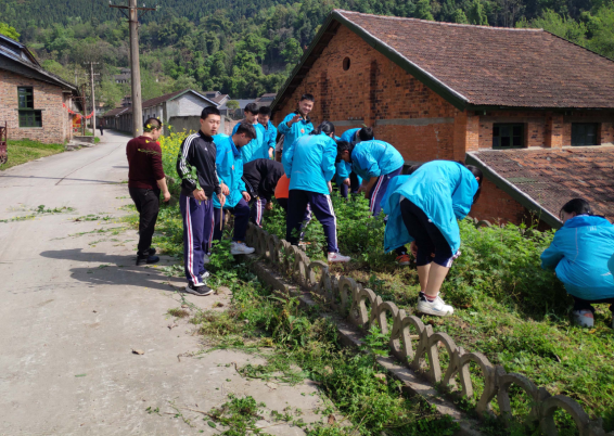 3月12日,射洪中学师生志愿者在为3536厂清理花圃杂草。(四川省射洪中学供图)