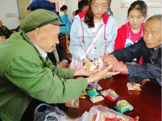 9月23日,射洪中学学生志愿者走进敬老院探望孤寡老人。(四川省射洪中学供图)
