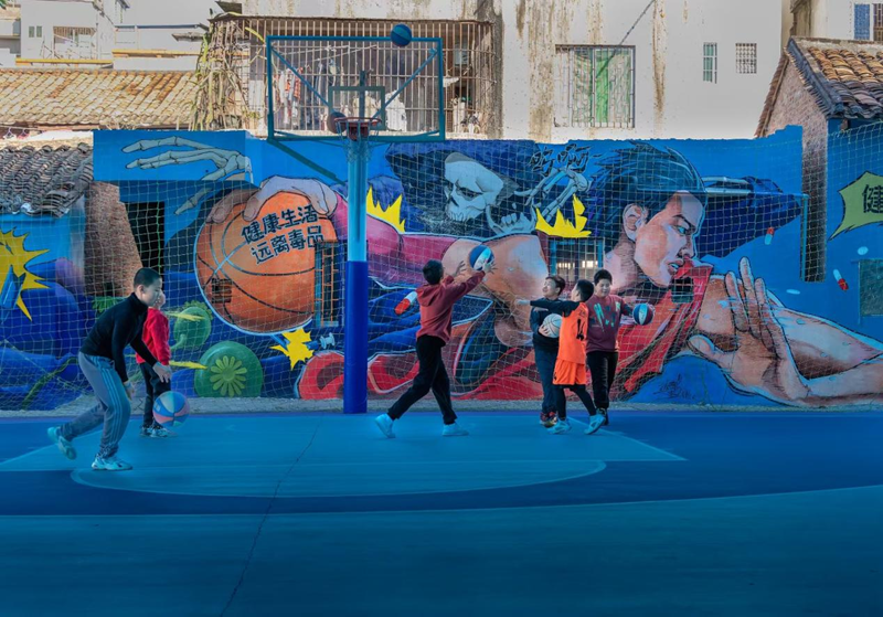 2023年12月24日,东莞市出租屋租住群体在篮球场打球,积极融入“篮球城市”。新华网发(黄亚非 摄)