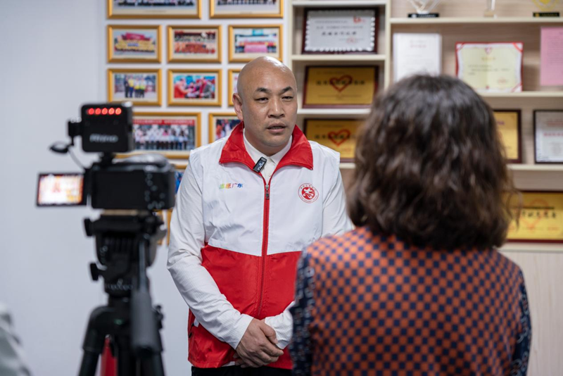 2023年12月13日,中国好人、东莞市南城志愿者协会会长王庆余接受采访。新华网 钟奕 摄