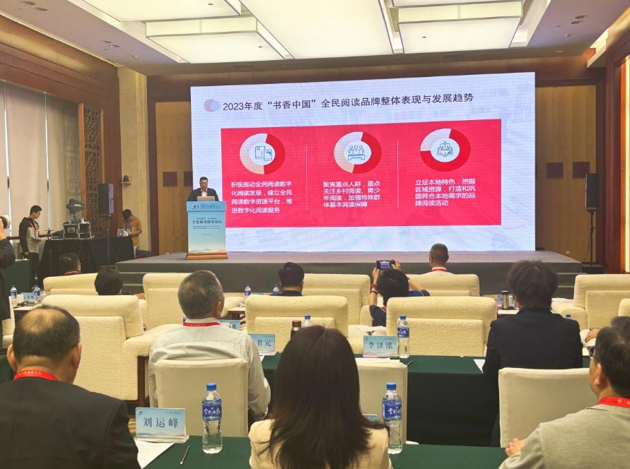 在研究成果发布阶段,中国新闻出版传媒集团负责同志介绍了2023年度“书香中国”全民阅读品牌发展趋势,并对典型案例进行分析。全民阅读与融媒体智库研究员马萧萧以“积极推动少儿阅读推广,助力书香社会建设”为主题,对中国少儿阅读数智平台建设阶段成果进行了展示。中国新闻出版传媒集团编委会主任、《中国新闻出版广电报》总编辑丁以绣发布了“2023年青少年及儿童图书阅读调研”成果。电子科技大学公共管理学院硕士生导师董子铭以“‘智慧阅读’能否带来‘阅读智慧’”为主题,介绍了生成式人工智能时代青年阅读能力提升的调查与思考。