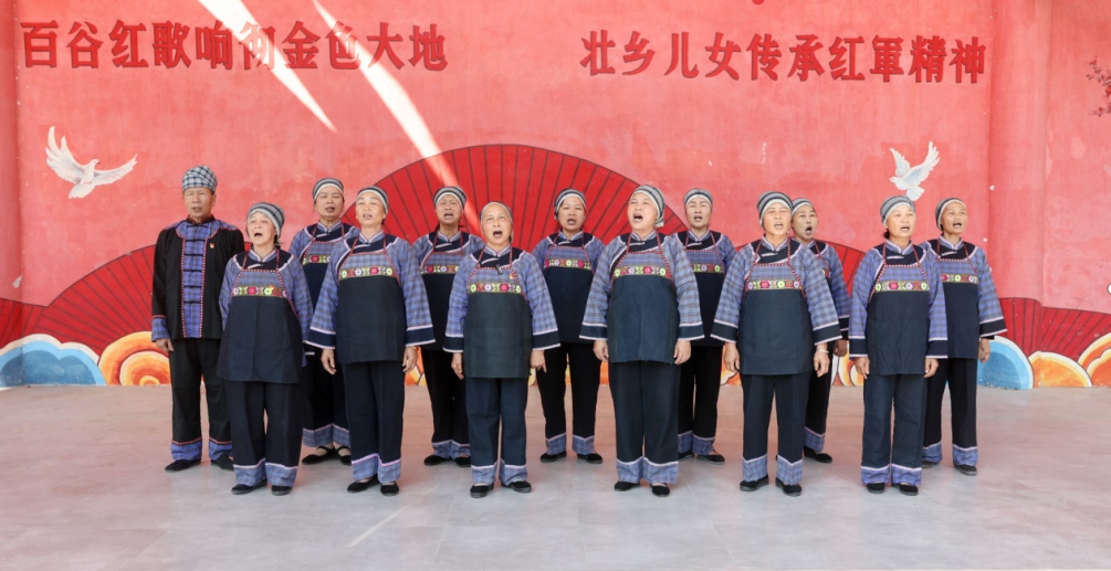 “美丽乡村人人建,家家户户都受益……”这是当地壮语歌曲翻译而成的歌词。“现在我们把移风易俗‘五个统一’要求融入革命歌曲的曲调里,反复为群众演唱,希望能引导大家摒弃陈规陋习,树立文明新风。”合唱团成员、百谷红军村陈列室讲解员谈志玲说。
