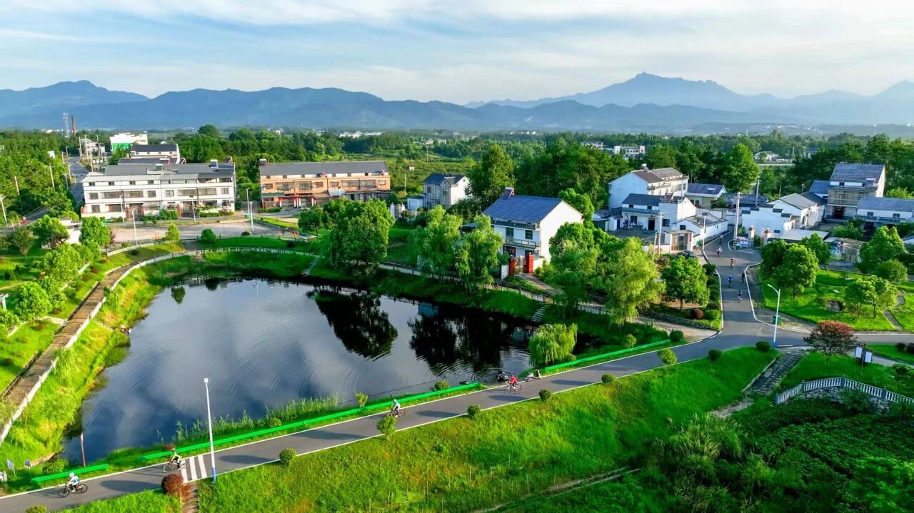 走进安徽省安庆市潜山市黄铺镇黄铺村,仿佛步入一幅清新秀美的山水画卷。一栋栋白墙灰瓦的“新皖派”民居错落有致,一条条水泥路蜿蜒贯通全村,栅栏围起的当家塘碧波荡漾,丘陵上的经济林随风轻曳。公交车直通村内,整个村庄被绿树繁花环抱,处处洋溢着宁静与和谐。