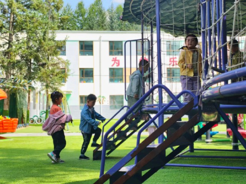青海西宁湟中区苏尔吉村的儿童乐园里孩子们在玩耍嬉戏。中国文明网 王晓宁 摄