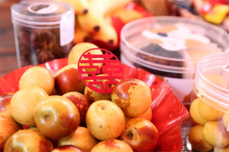上午9时,阳光洒在居民楼前的空地上,热闹氛围悄然升腾。没有震天的锣鼓喧天,没有几十桌流水席的铺张,只有一道色彩明快的拱门立在角落,几张方桌随意错落,桌上堆着饱满的瓜子、新鲜的水果、甜蜜的糖果,保温壶里的热茶氤氲出袅袅热气,简单的布置里,满是生活的烟火气。“之前听他俩说不办婚宴,就想着来凑个热闹,没想到这么有滋味!”亲友王阿姨一边帮着递茶水,一边笑着感慨,“以前参加婚宴,光忙着赶场、应付场面,根本没机会好好跟新人聊聊,这次坐着唠唠嗑也很好。”