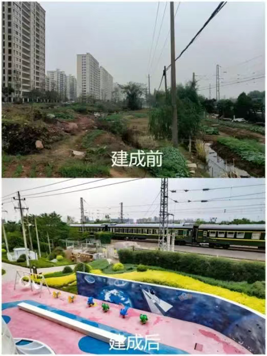 “微提升”激活地块潜能,推动城市面貌提升。婺城区近年来通过“口袋公园”项目,巧妙利用城市边角地、闲置地等零碎空间,打造了一批兼具生态、休闲、文化功能的绿色空间。例如位于城北街道铁路沿线的书香世家口袋公园原为废弃荒地,提升后公园占地8900平方米,融入了“海绵城市”理念,设置雨水花园、透水步道及168立方米模块蓄水池,收集雨水用于绿化灌溉。公园还设有儿童活动区、运动球场和健康步道,兼顾生态与实用功能,既解决了铁路沿线环境脏乱问题,又能成为居民纳凉、健身的社区客厅。