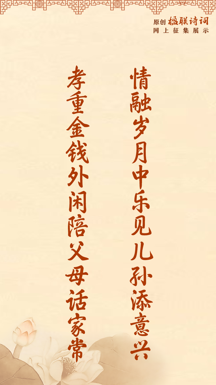 情融岁月中乐见儿孙添意兴 孝重金钱外闲陪父母话家常 | 楹联赏析