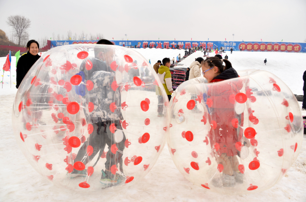 在姜庄村冰雪大世界,游客体验雪地圈。