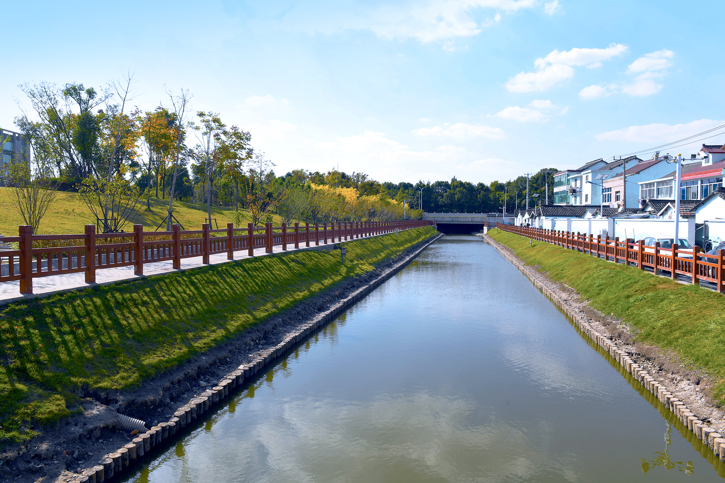 永联村房屋林立,河道干净整洁。
